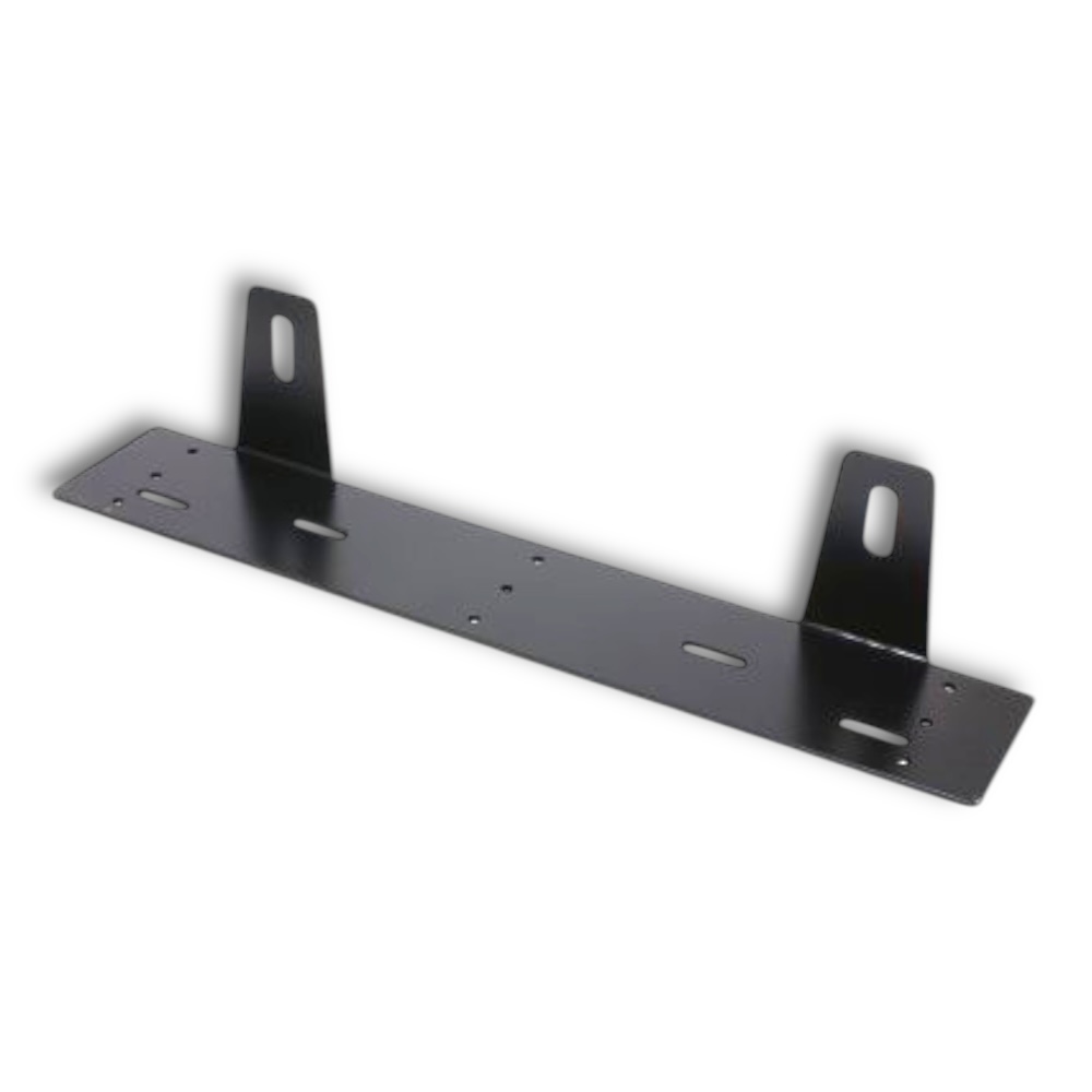 Extraljusfäste för 2 stycken extraljus med diameter på max 310 mm. Detta fäste passar extraljus som är djupa som tex. NBB Alpha 225mm halogen/xenon just för att fästöronen för själva extraljuset är längre möjliggör detta fäste till en enkel installation för extraljus. 4st Slitsade hål 7x30mm 2 stycken som sitter i centretat lodrätt med cc mått 206mm två nedre som sitter på höjd 27,5 mm med cc mått horisontellt 366mm. 9 stycken 5,5 mm hål med 3 stycken i centrum, 3 stycken längst ut i kanten. Extraljusen går att justera framåt och bakåt med 35 mm slitsat hål.
