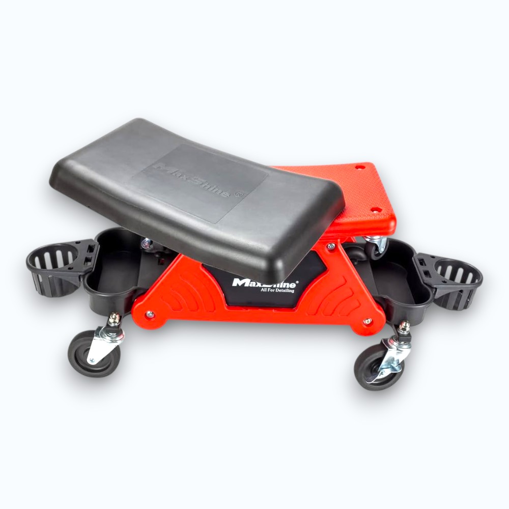 MaxShine Detailing Pall Stol med Kudde är en ergonomisk och multifunktionell stol designad för bilvård och detailing. Den gör det enkelt att arbeta nära bilen i alla lägen och minskar belastning på knän och rygg. Stolen har praktiska förvaringslösningar för verktyg, handdukar och småsaker, vilket effektiviserar ditt arbete.