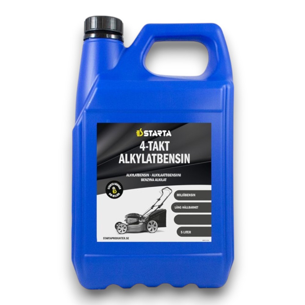 Starta Alkylatbensin 4‑T 5 L är ett miljöanpassat specialbränsle för alla typer av fyrtaktsmotorer, såsom gräsklippare, snöslungor, jordfräsar, elverk och båtmotorer. Den rena sammansättningen säkerställer effektiv förbränning, längre livslängd på motorn och minskade utsläpp – perfekt för både professionell och privat användning.