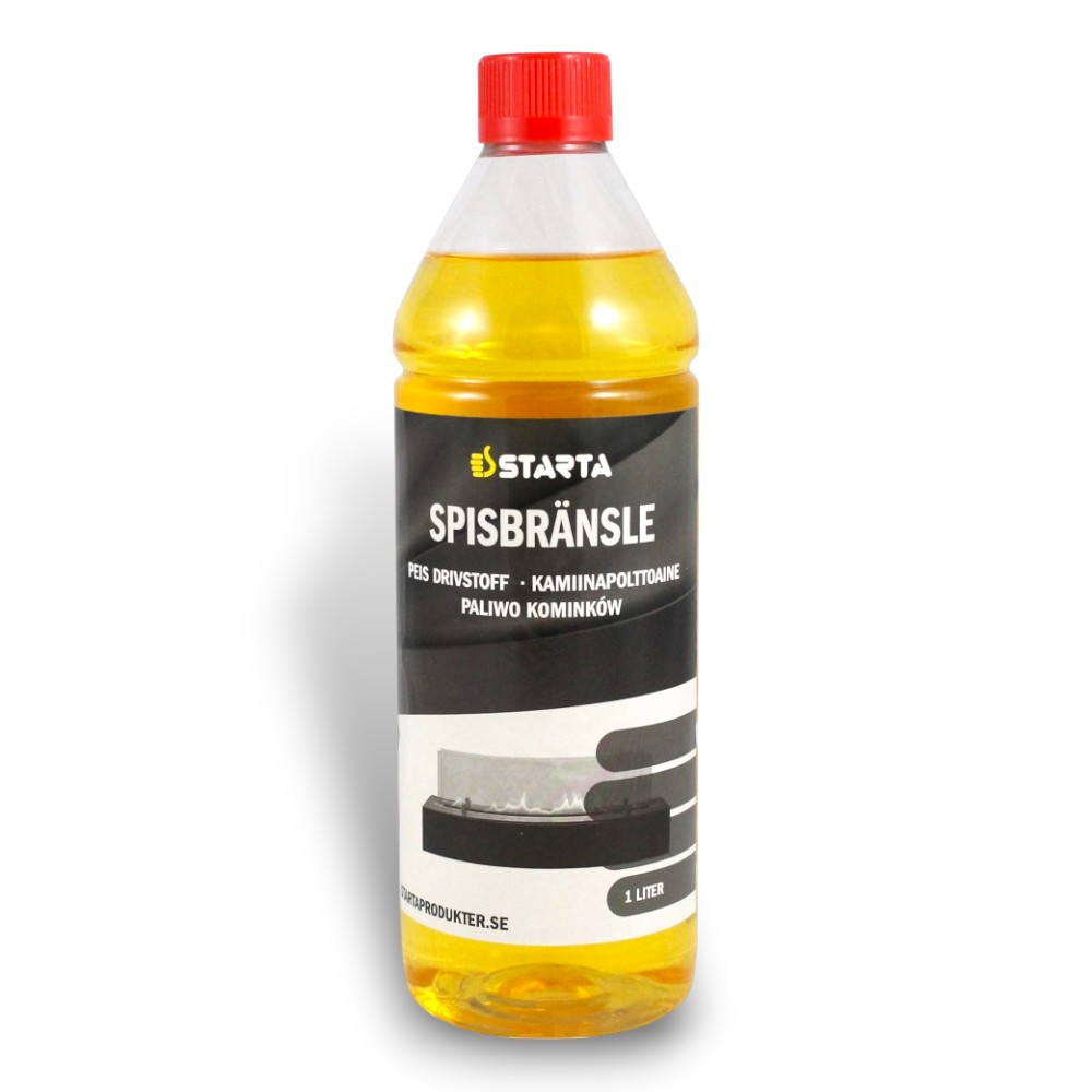 STARTA Spisbränsle är avsett att användas som bränsle både inomhus och utomhus i skorstenslösa kaminer och dekorations eldar. STARTA Spisbränsle är baserad på bio-etanol och brinner helt rök- och sotfritt med gula fina lågor.